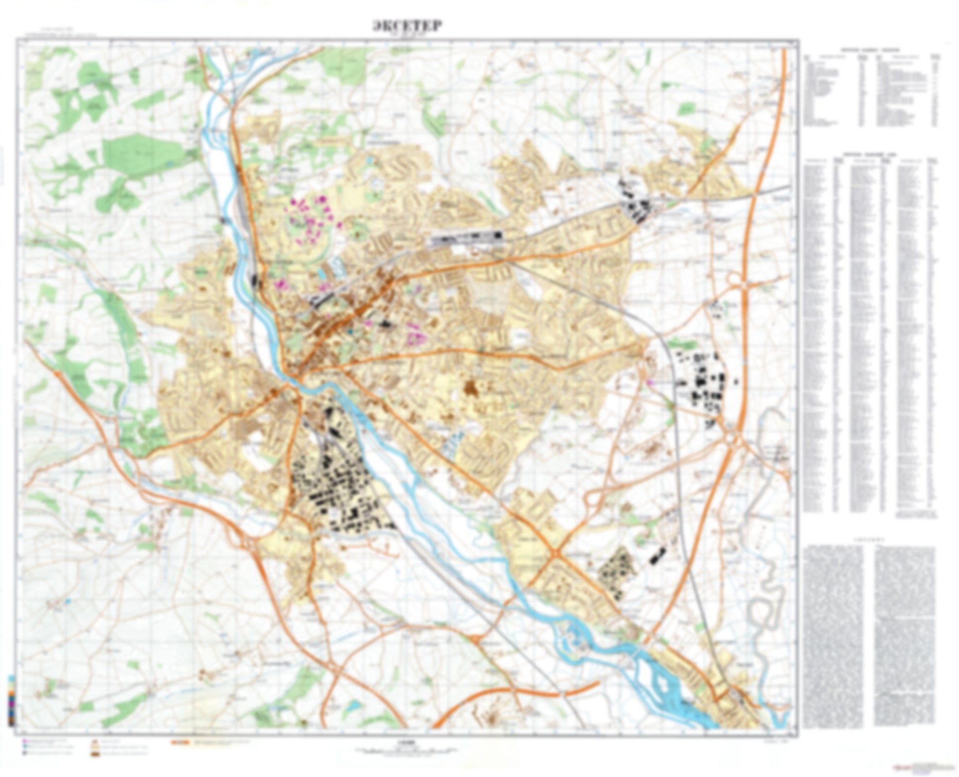 - During the Cold War and before easy access to high-resolution satellite imagery, The Soviet Military was secretly mapping the entire world. These aesthetically striking maps are beautiful down to the last detail and fantastic wall art and until now, have rarely been viewed or available to outsiders. This series has been covered by Wired Magazine and Greg Miller in his book, "All Over the Map: A Cartographic Odyssey". This map is part of the Soviet City Plans Series presented by East View, which has the largest collection of Soviet Military City Plans in the world. The Soviet Military City Plan(s) of Exeter (UK) is one in a series of highly detailed topographic city maps developed by the USSR Ministry of Defense during the Cold War era. These collectable, high resolution print-on-demand editions are delivered on premium, acid-free, matte paper. This item is sheet number 1 in a set of 1 sheet(s) for Exeter Populated Places: Alphington, Countess Wear, Exeter, Exminster, Ide, Pinhoe