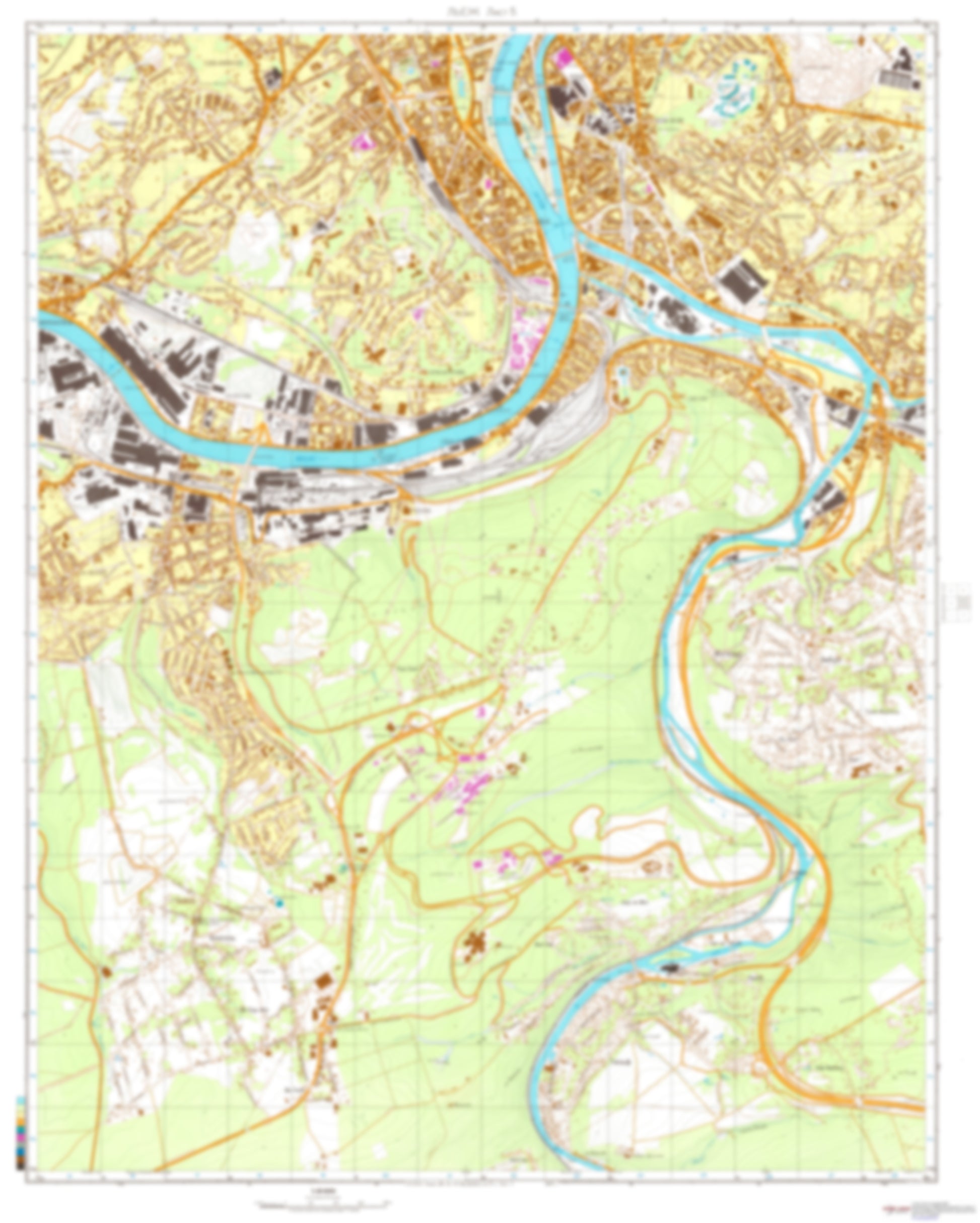 - During the Cold War and before easy access to high-resolution satellite imagery, The Soviet Military was secretly mapping the entire world. These aesthetically striking maps are beautiful down to the last detail and fantastic wall art and until now, have rarely been viewed or available to outsiders. This series has been covered by Wired Magazine and Greg Miller in his book, "All Over the Map: A Cartographic Odyssey". This map is part of the Soviet City Plans Series presented by East View, which has the largest collection of Soviet Military City Plans in the world. The Soviet Military City Plan(s) of Liege 5 (Belgium) is one in a series of highly detailed topographic city maps developed by the USSR Ministry of Defense during the Cold War era. These collectable, high resolution print-on-demand editions are delivered on premium, acid-free, matte paper. This item is sheet number 5 in a set of 6 sheet(s) for Liege Populated Places: Amercoeur, Angleur, Angleur, Beauregard, Boncelles, Boncelles, Bressoux, Chenee, Chenee, Cointe, Embourg, Embourg, Fetinne, Fragnee, Grand Corty, Grivegnee, Grivegnee, Hauster, Haute Pre, Kinkempois, La Boverie, Le Sart Haguet, Les Gonhis, Longdoz, Mathysart, Ougree, Ougree, Renory, Robermont, Saint-Gilles, Saint-Nicolas, Sainval, Sart Tilman, Sauheid, Sclessin, Sur le Mont, Sur-Cortil, Thier des Critchons, Tilff, Tilff, Tilleur, Tilleur, Trihay, Val Benoit Landmarks and Natural Features: Bois d'Embourg, Bois d'Oblusteine, Bois de Colonster, Bois de Cornillon, Bois de Famelette, Bois de la Marchandise, Bois de Nomont, Bois de Saint-Jacques, Bois de Saint-Jean, Bois de Saint-Laurent, Bois de Sclessin, Ile du Moulin