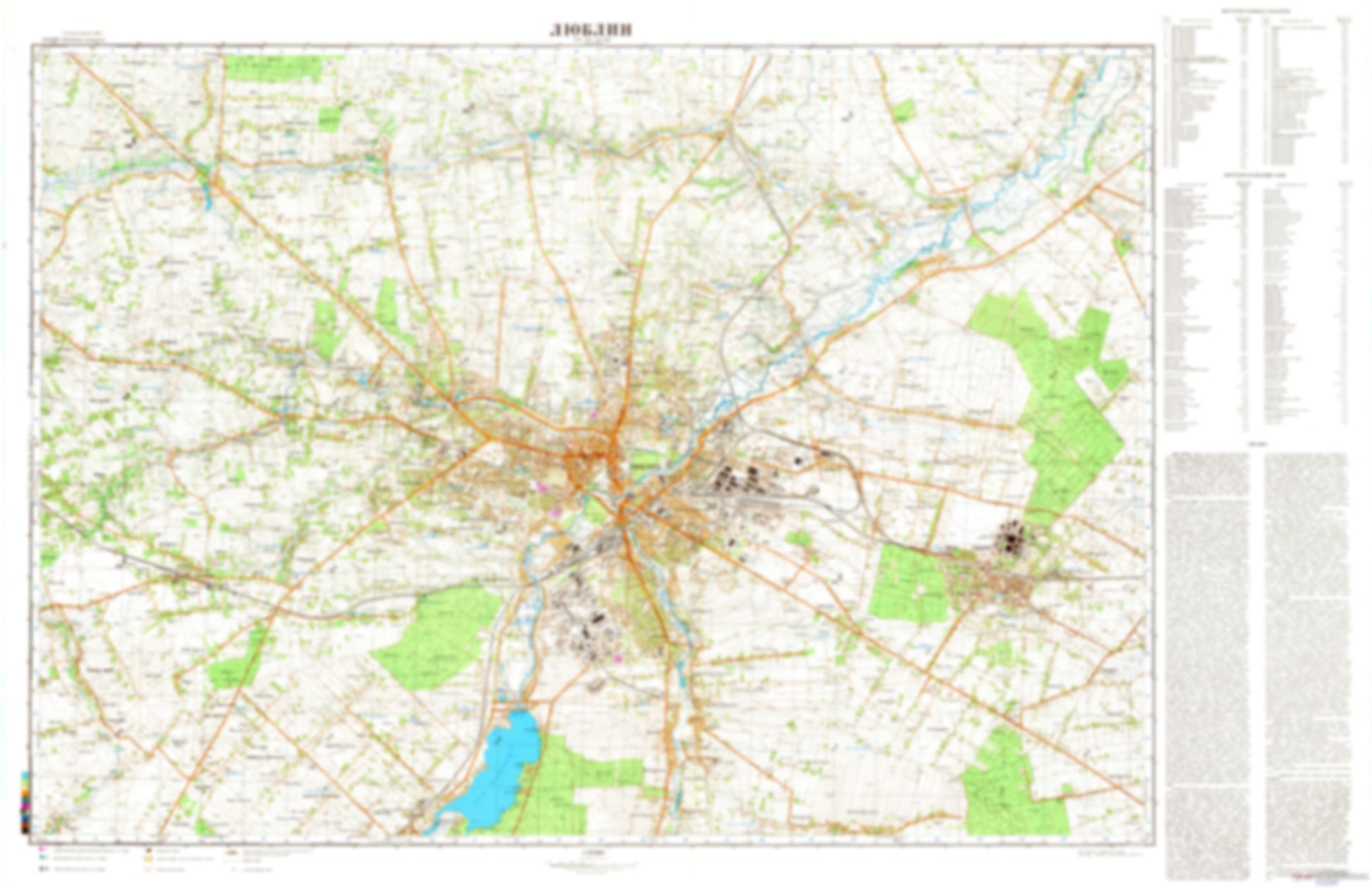 - During the Cold War and before easy access to high-resolution satellite imagery, The Soviet Military was secretly mapping the entire world. These aesthetically striking maps are beautiful down to the last detail and fantastic wall art and until now, have rarely been viewed or available to outsiders. This series has been covered by Wired Magazine and Greg Miller in his book, "All Over the Map: A Cartographic Odyssey". This map is part of the Soviet City Plans Series presented by East View, which has the largest collection of Soviet Military City Plans in the world. The Soviet Military City Plan(s) of Lublin (Poland) is one in a series of highly detailed topographic city maps developed by the USSR Ministry of Defense during the Cold War era. These collectable, high resolution print-on-demand editions are delivered on premium, acid-free, matte paper. This item is sheet number 1 in a set of 1 sheet(s) for Lublin Populated Places: Abramowice Prywatne, Adampol, Barak, Bystrzyca, Dlugie, Elizowka, Hajdow, Kliny, Kolonia Janowice, Kolonia Krepiec, Kolonia Plonszowice, Konopnica, Marysin, Natalin, Pietrzakowizna, Radawczyk Boboszow, Radawiec Duzy, Radawiec Maly, Sieprawice, Trojaczkowice, Uniszowice, Wilczopole, Wrotkow, Zadebie Drugie, Zemborzyce